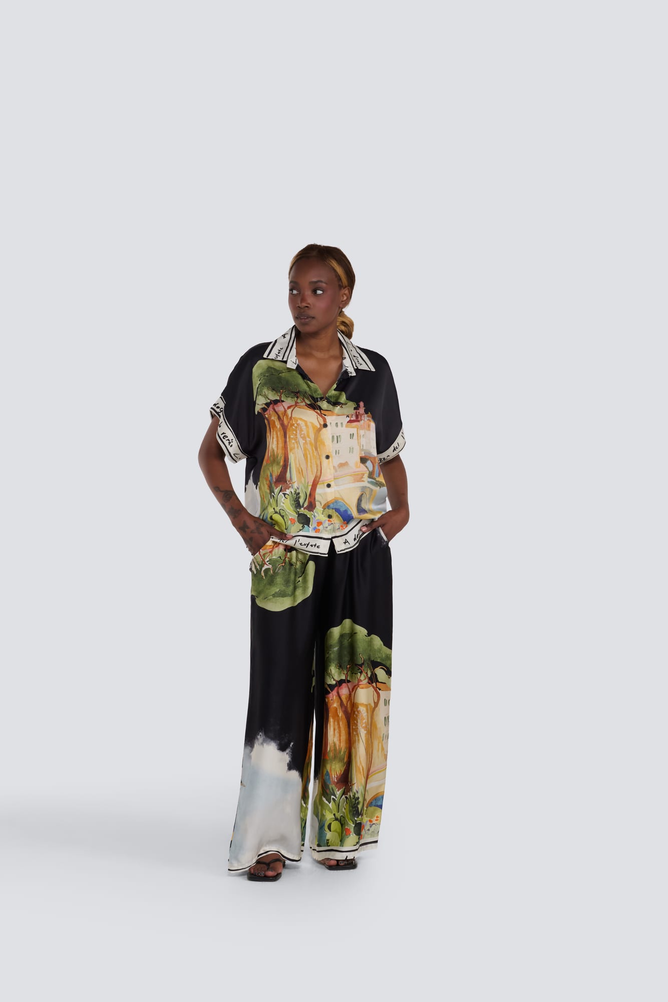 Jessica Laura- Italy Print Silk Blend Pant in Black